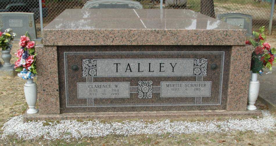 Talley, Clarence W Jun 4, 1914 Jul 20, 1990 DS with Myrtle Schaffer; above ground vault