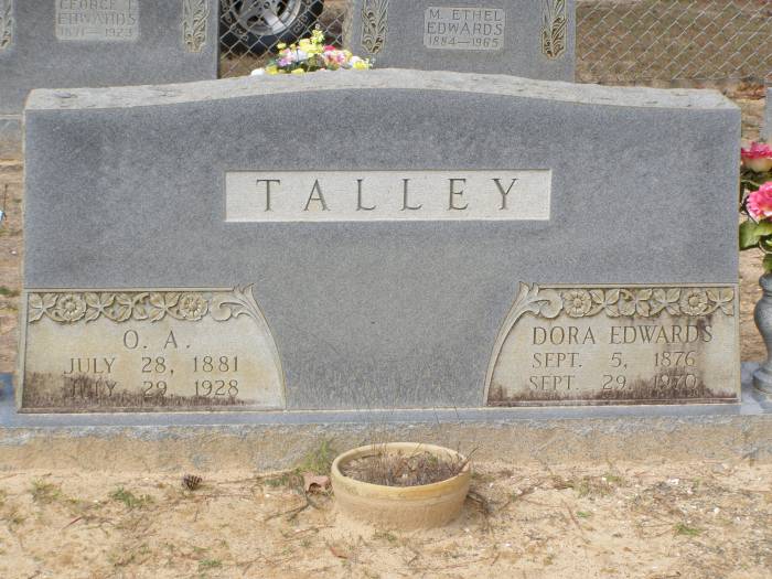 Talley, Dora Edwards Sep 5, 1876 Sep 29, 1970 DS with O A