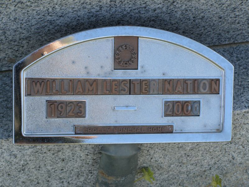 NATION, William Lester    May  8, 1923 Sep 27, 2000 Croley FHM; Pvt US Army WWII; Submitted by the Nations Family