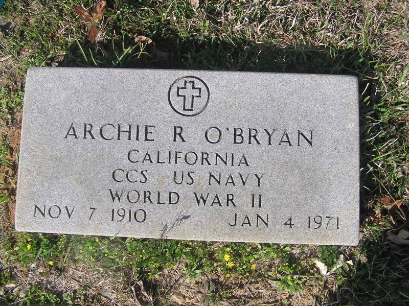 O'BRYAN, Archie Russell Nov  7, 1910 Jan  4, 1971 CA CCS US Navy WWII; Submitted by Patricia Oliver Holloway