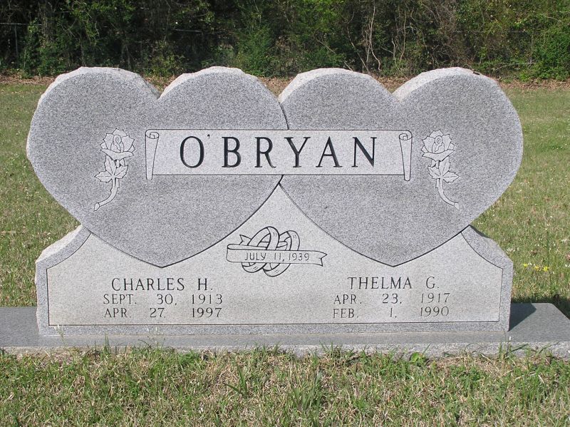 O'BRYAN, Thelma G Apr 23, 1917   Feb  1, 1990 w/o Charles H; Submitted by Patricia Oliver Holloway
