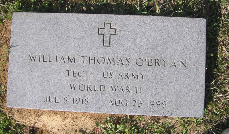 O'BRYAN, William Thomas  Jul 08, 1918 Aug 23, 1999  Tec 4 US Army WWII; Submitted by Patricia Oliver Holloway