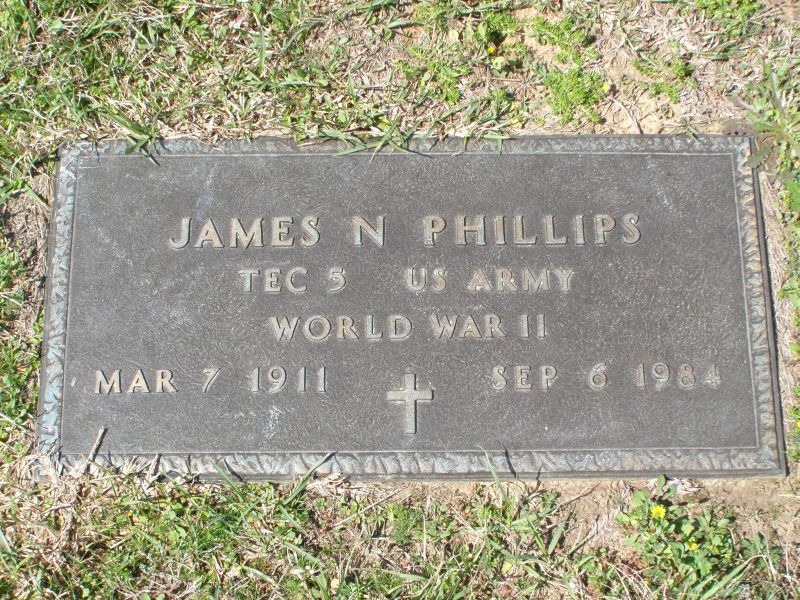 PHILLIPS, James N Mar  7, 1911   Sep  6, 1984 TEC5 US Army WWII