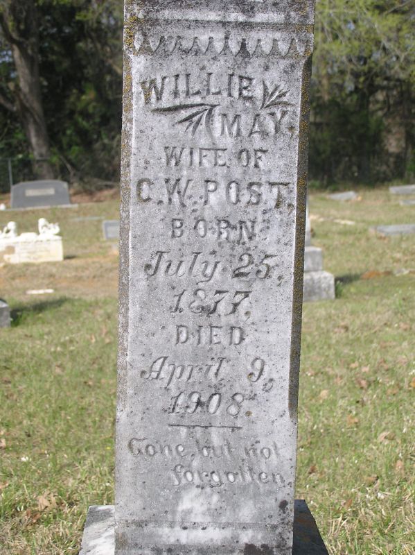 POST, Willie May Jul 25, 1877 Apr  9, 1908 Pic #2; w/o CW
