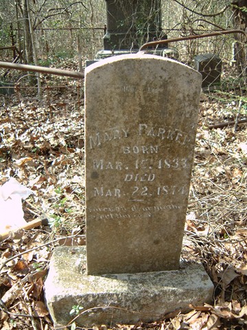 Row of graves of Chesley P. Parker & wife, Mary Bradberry Parker