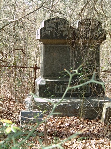 The Norman Family tombstone is huge, maybe eight feet tall. It is a beautiful green marble stone which towers over all other stones in the Pole Town Cemetery. Inside the falling down fence of the plot, there are smaller markers for all the family members. There are ten listed here. The Normans were a prominent Grand Saline family in the late 1800s and early 1900s.