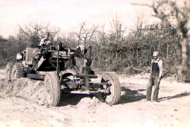 Dick (on right) at work on road in