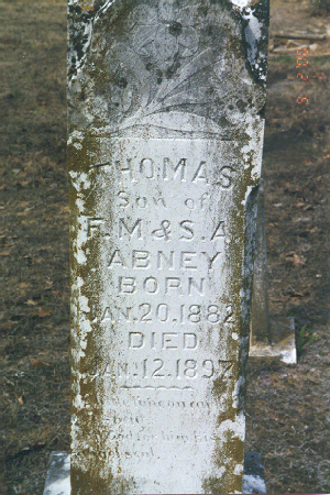 Thomas was the 15 year old son of Francis Marion Abney & Sallie Abney.