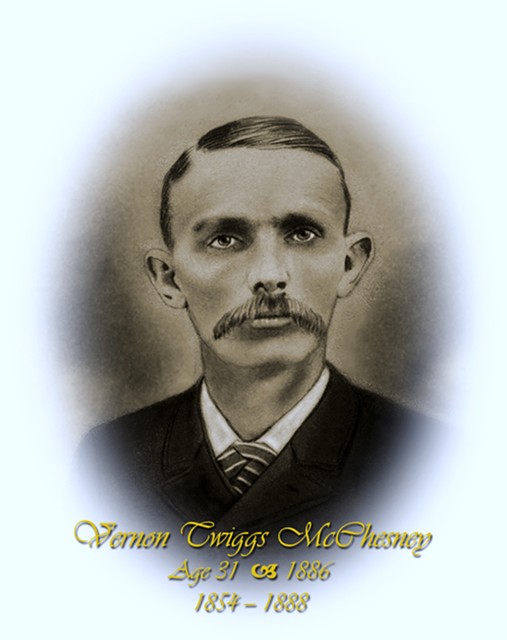 DIED at the family residence in Wills Point, Texas, at 8:30 p.m. August 17th 1888, V. T. McChesney, after a lingering illness of several months. Mr. McChesney was born in Caldwell county, Ky., July 23rd 1854.