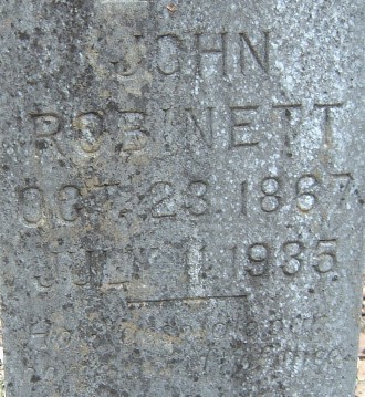 John was born in Texas to Michael Mack "Mike" & Mary Ann Morris Robinett. He was a 2 years old, living in the home of his parents in Van Zandt County, Texas, in 1870, according to the census. In the 1900 census he was living in the home of his brother Dee, and Dee's wife and children. His mother was also living there. In 1920, John was living in the home of his 71 year old mother. In the 1930 census, John, 62, was living in the home of his 83 year old mother in Van Zandt County. He died in 1935, 6 years prior to his mother.