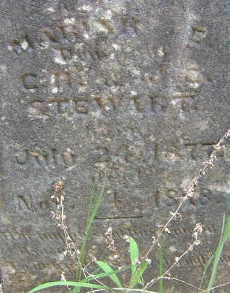Mariah was the one year old daughter of Cortutian H. and Julia Stewart. Her siblings were: Sisters: Mary, Frances, Maybell, Della, and Pearlie. Brothers: Gussie, William, and Charles. Several of them born years after her death. You can learn more of her family on the pages for Julia C. Stewart and Sallie E. Stewart. (Research by Betty Phillips using the Van Zandt County US census, Jones Cemetery and the VZC Marriage Records Book 1848 - 1909)