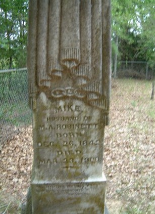MACK "MIKE" ROBINETTMike was the husband of Mary Ann Morris Robinett. He was a Confederate Civil War Veteran, ranked 2nd Sgt., Company H. 10th Texas Calvary . Acording to the 1880 Van Zandt County, Texas, Census, Mike was a farmer, lived with his wife Mary Ann, and had the following children: John, age 12, in school; Mittie, age 8, in school; Dee, age 5 , in school; and Mary age 2.