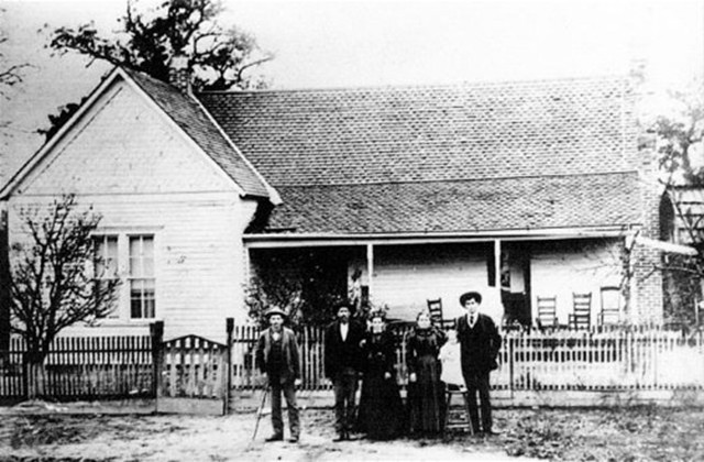 This is a picture of Michael Mack Robinet that I found in my Mother's old pictures....Betty Phillips This is the home of Michael Mack "Mike" Robinett. On the left, with the cane, is son, John, who never married. In the middle is Michael Mack "Mike" and Mary Ann Morris Robinett. On the left is son & wife, Dee and Alma May Simmons Robinett with their daughter, Fannie Dee, who was born in 1898 and died in 1997. This picture was taken about 1899 to 1900, just before Mike died.